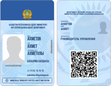 ID-карта госслужащего - является обязательным документом для всех работников государственных учреждений согласно Приказу Председателя Агентства Республики Казахстан по делам государственной службы от 21 апреля 2020 года № 69 "Об утверждении Описания идентификационных карт, правил их выдачи и использования". Данные карты используются для интеграции данных государтсвенных служащих в систему "E-Qyzmet". Кроме того данные карты используются в системе контроля доступа (СКУД) организации. Для этого в карту внедряется бесконтактный чип EM-Marine либо чип семейства NXP Mifare. Также карты могут быть оснащены ланьярдом и ретрактором.